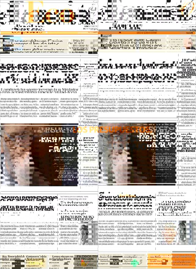 Las primeras ediciones de los periódicos de información económica españoles incluyen, entre otras, las siguientes noticias en sus portadas: