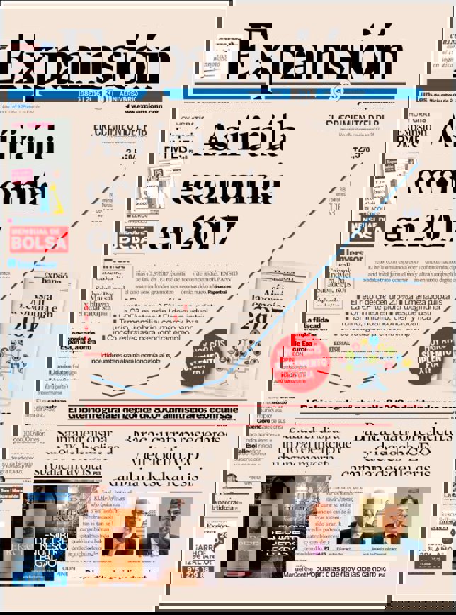 EXPANSIÓN: "Así irá la economía en 2017"; "Banca: cuatro presidentes y dieciocho CEO cambian desde la crisis"; "Santander dispara un 10% el beneficio de su banca mayorista"; "El Gobierno regulará el negocio de 8.000 administraciones concursales".