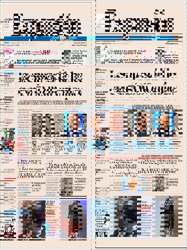 EXPANSIÓN: "Las empresas del Ibex crean 50.000 empleos"; "Orange se acerca a Vodafone tras ganar el 'roaming' de Yoigo"; "El bloqueo político afecta a la lucha contra el fraude fiscal", afirma José Luis Gorba en una entrevista; "G-20: Rajoy señala al populismo como enemigo del crecimiento".
