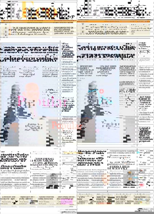Las primeras ediciones de los periódicos de información económica españoles incluyen, entre otras, las siguientes noticias en sus portadas: