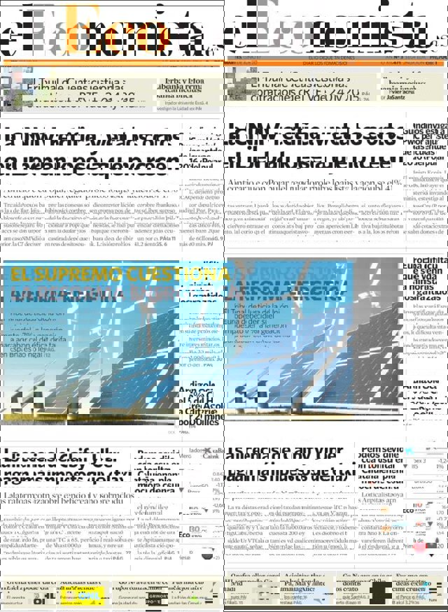 EL ECONOMISTA: "La CNMV rectifica y veta los cortos en Liberbank pese a que no crecen"; "Guindos investiga a PwC por el 'ajuste' de las cuentas de 2016 del Popular"; "El Supremo cuestiona la reforma energética"; "Europa dificulta que se vendan a minoristas los garantizados", "Ardian coloca el 5% de CLH a Crédit Agricole por 200 millones"; "Las licencias de Cabify y Uber pagan más impuestos que el taxi"; "Podemos se divide con la consulta en Cataluña en plena moción de censura".