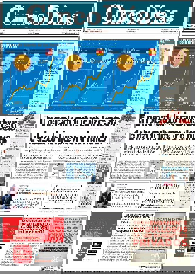 Las primeras ediciones de los periódicos de información económica españoles incluyen, entre otras, las siguientes noticias en sus portadas:
