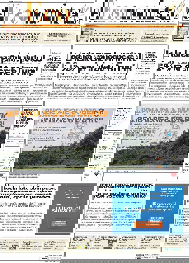 EL ECONOMISTA: "La deuda española pierde el 2,4% por el 'efecto Trump'"; "Abengoa negocia vender por 2.000 millones su red en Brasil"; "Moncloa plantea subir impuestos 'verdes', especiales y euroviñeta"; "Las marcas blancas reducen cuta por primera vez y caen por debajo del 40%"; "China avisa a EEUU de que está dispuesta a reducir pedidos"; "Juan Hermoso, histórico de El Corte Inglés, deja el grupo".