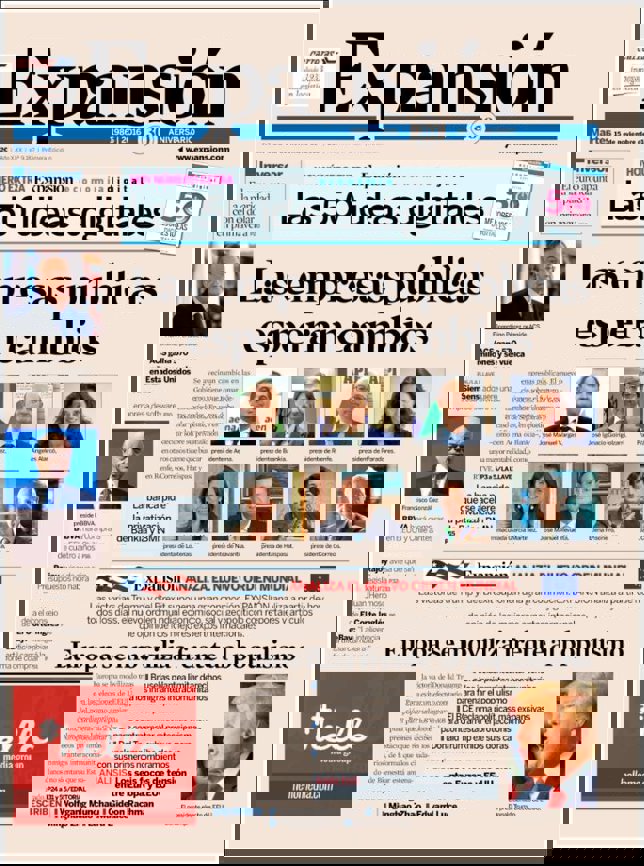 EXPANSIÓN: "Las empresas públicas esperan cambios"; "Europa se moviliza frente al populismo"; "Expansión analiza el nuevo orden mundial"; "El euro apunta a la paridad con el dólar en primavera"; "ACS gana 750 millones y se vuelca en Estados Unidos".