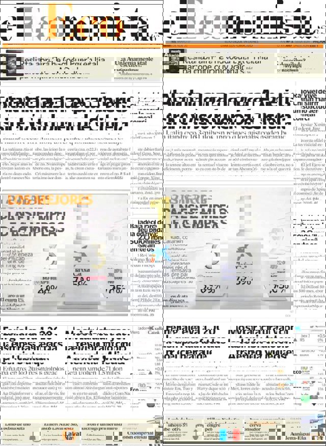 Las primeras ediciones de los periódicos de información económica españoles incluyen, entre otras, las siguientes noticias en sus portadas: