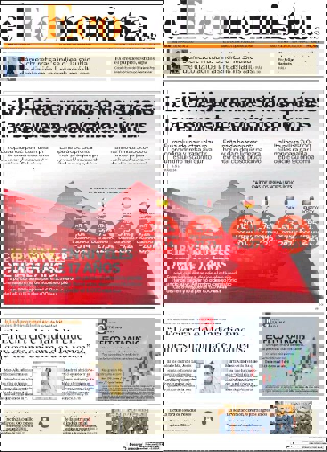 Las primeras ediciones de los periódicos de información económica españoles incluyen, entre otras, las siguientes noticias en sus portadas: