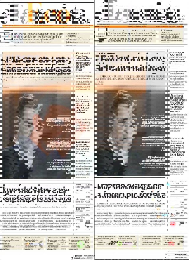Las primeras ediciones de los periódicos de información económica españoles incluyen, entre otras, las siguientes noticias en sus portadas: