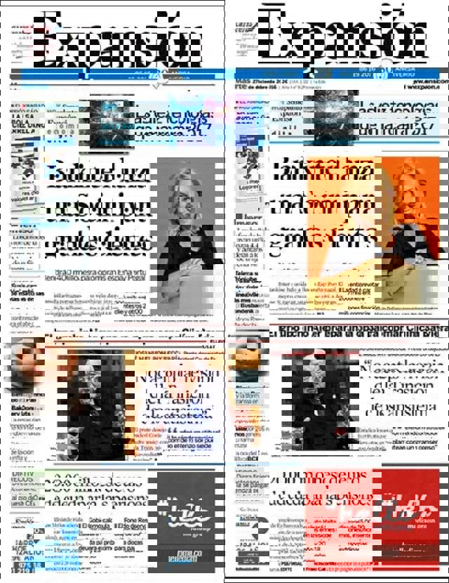EXPANSIÓN: "Bankinter lanza una Socimi para grandes clientes"; "El grupo chino Aier prepara una opa para comprar Clínica Baviera"; José Manuel Romay Beccaria: "No acepto la revisión de la Transición de los antisistema"; "20.000 millones de euros de deuda para las pensiones".