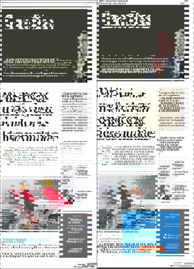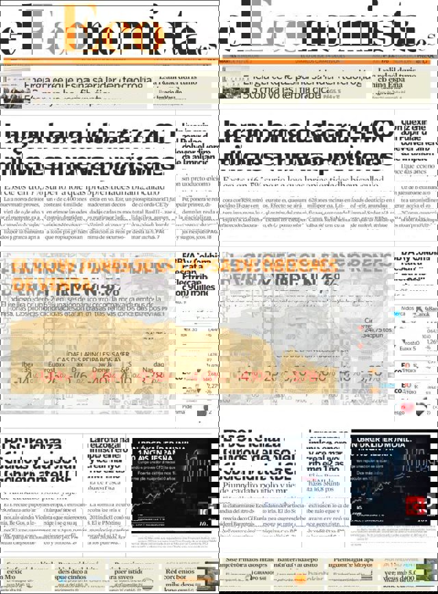 Las primeras ediciones de los periódicos de información económica españoles incluyen, entre otras, las siguientes noticias en sus portadas: