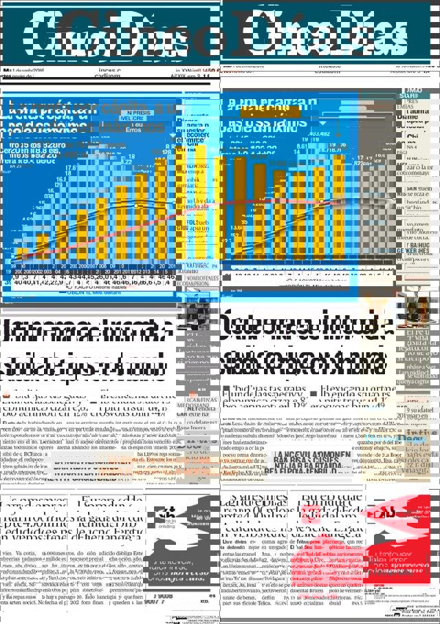 Las primeras ediciones de los periódicos de información económica españoles incluyen, entre otras, las siguientes noticias en sus portadas: