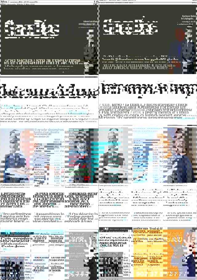 CINCO DÍAS: "Iberia compra Air Europa"; "Eco Rail y Globalvia se suman a la puja del AVE privado"; "Liderazgo destacado en la batalla por las rutas con América Latina".
