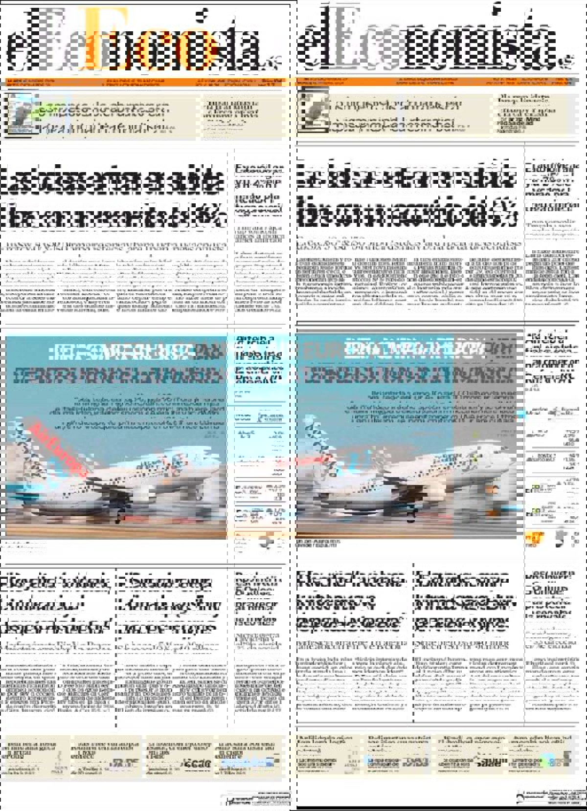 EL ECONOMISTA: "Las bolsas entran en subida libre con un recorrido del 6%"; "Iberia compra Air Europa para defender su trono el Latinoamérica"; "El Santander compra la firma de pagos Ebury para crecer en pymes".