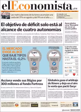 EL ECONOMISTA: "El objetivo de déficit solo está al alcance de cuatro autonomías"; "Acciona vende sus litigios por 300 millones al fondo Fortress"; "Globalvia gana el arbitraje de Itínere y deja en el aire la venta que pactó Sacyr".