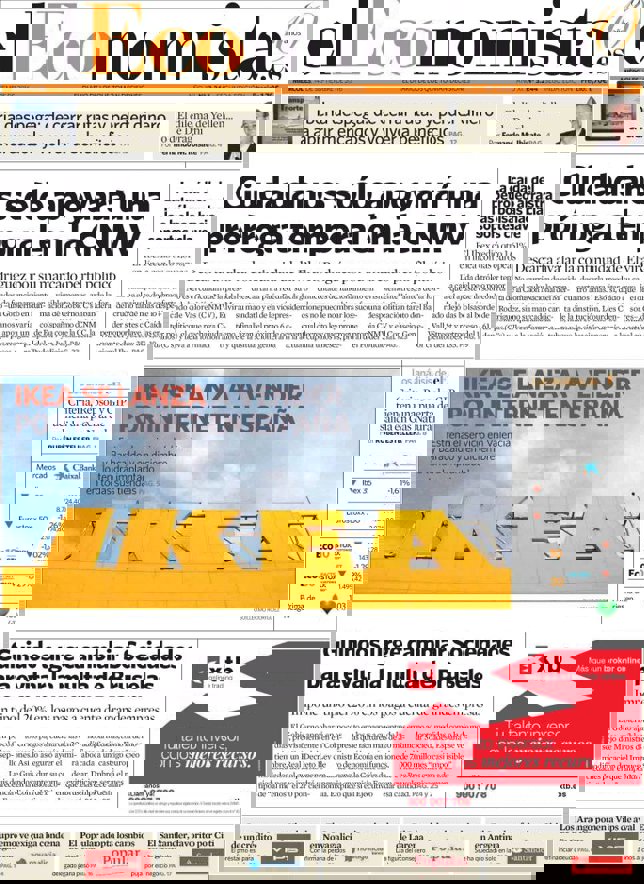 Las primeras ediciones de los periódicos de información económica españoles incluyen, entre otras, las siguientes noticias en sus portadas: