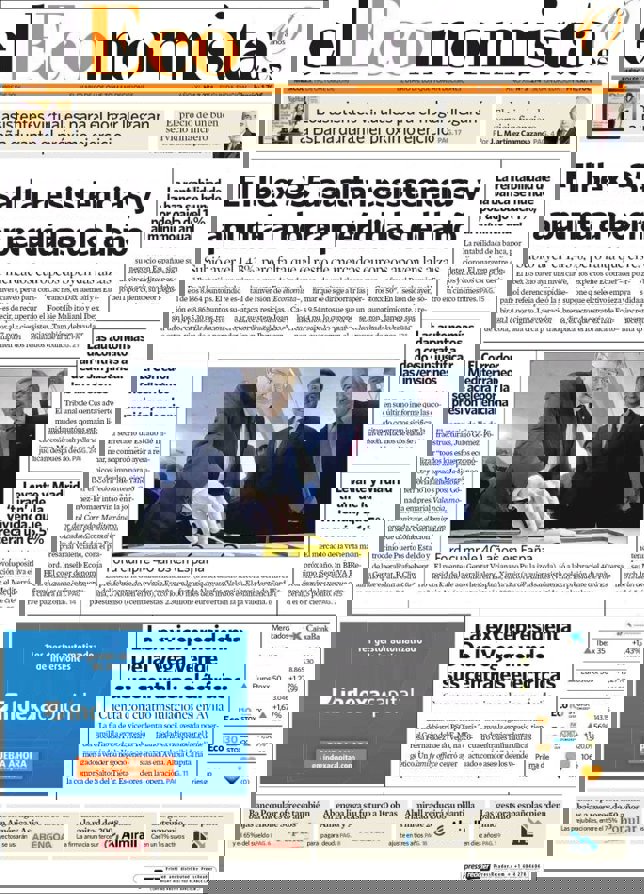 Las primeras ediciones de los periódicos de información económica españoles incluyen, entre otras, las siguientes noticias en sus portadas: