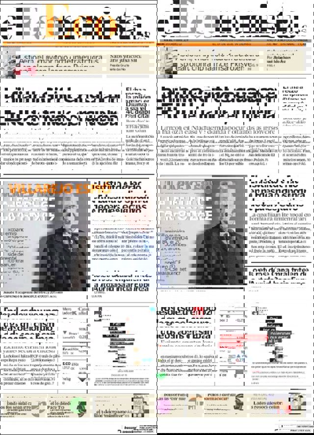 EL ECONOMISTA: "La filial de Grifols acusada en EEUU de fraude, en quiebra"; "Villarejo espió al jefe del BCE para González"; "El sustituto de Prado en Endesa no dispondrá de poderes ejecutivos"; "El rechazo a la ampliación en Dia suma ya el 40% del capital"; "Repsol descubre un pozo de gas con el consumo de dos años en España"; "Los retos de Campa al frente de la Autoridad Bancaria Europea".
