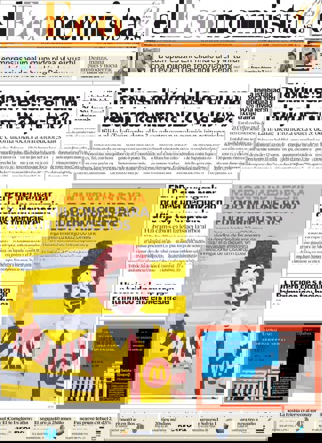Las primeras ediciones de los periódicos de información económica españoles incluyen, entre otras, las siguientes noticias en sus portadas: