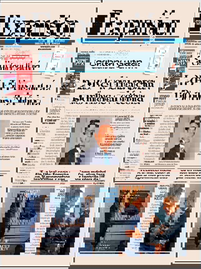 EXPANSIÓN: "La OPV de Telxius aportará 1.500 millones a Telefónica"; "AVE a La Meca: El consorcio juega 300 millones por retrasos"; "Caos en el mundo laboral por la sentencia de la UE"; "Obama pide unidad ante el populismo".