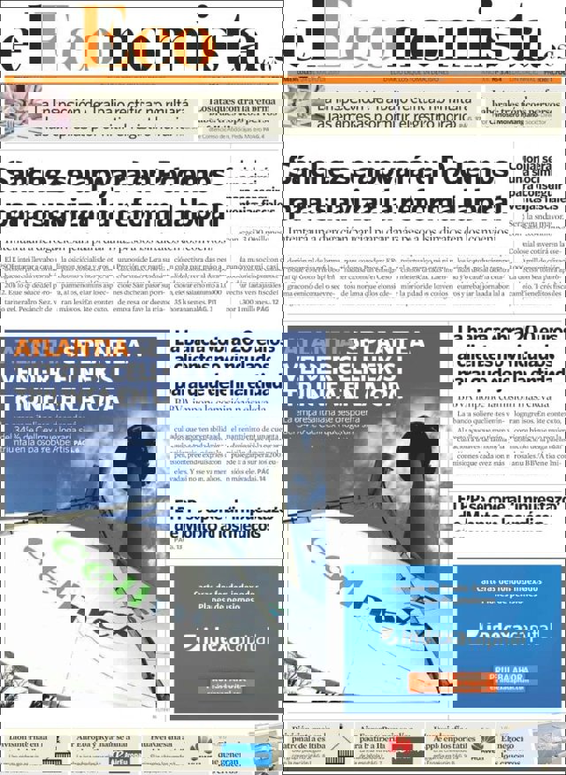 Las primeras ediciones de los periódicos de información económica españoles incluyen, entre otras, las siguientes noticias en sus portadas: