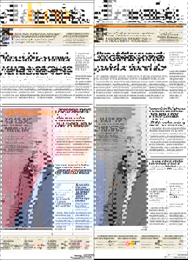 EL ECONOMISTA: "China estabiliza su moneda y suaviza las caídas en bolsa"; "Ortega paga 1.100 millones en impuestos"; "La concesión de hipotecas de la banca se hunde el 20,6% con la nueva ley"; "La guerra contra el cártel del camión suma 25.000 denuncias"; "Acciona entra en la promoción de lujo en la Riviera Maya"; "Los cinco cambios de opinión de Garamendi sobre el Gobierno".