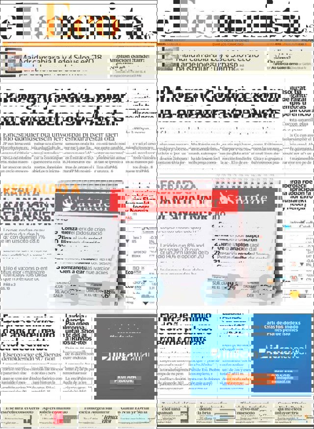 Las primeras ediciones de los periódicos de información económica españoles incluyen, entre otras, las siguientes noticias en sus portadas: