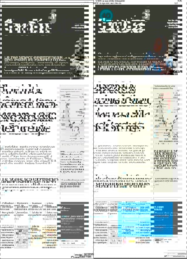 Las primeras ediciones de los periódicos de información económica españoles incluyen, entre otras, las siguientes noticias en sus portadas: