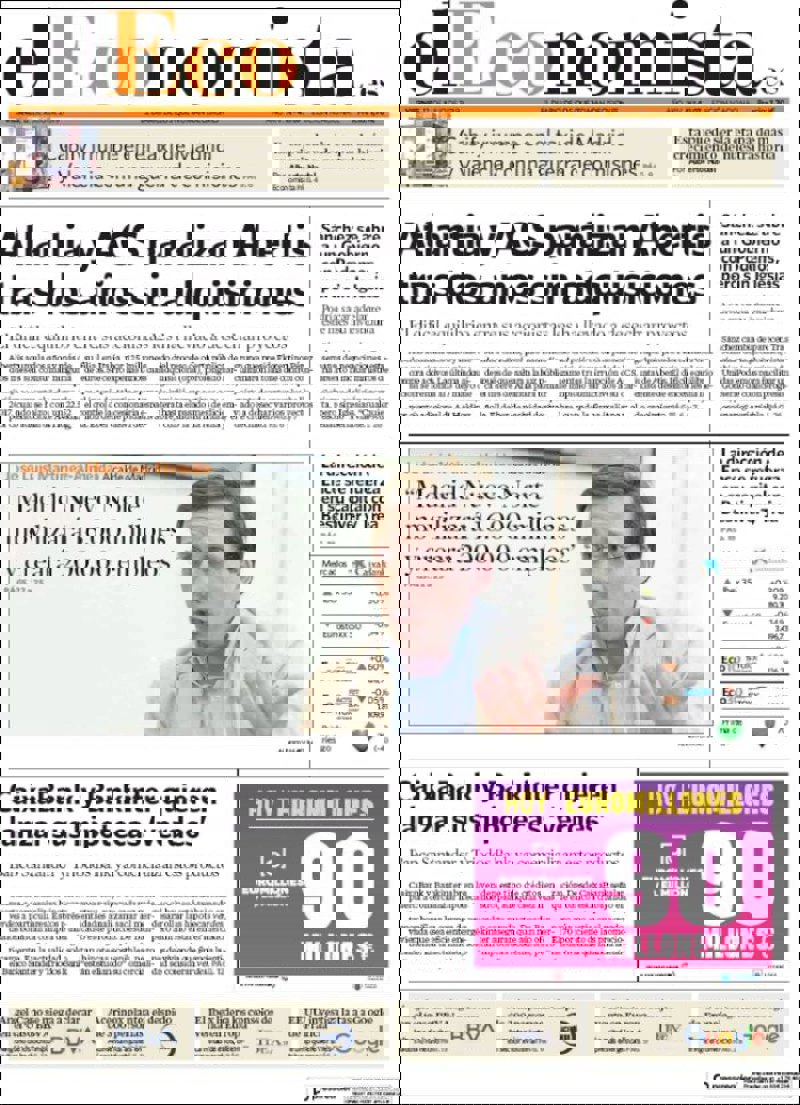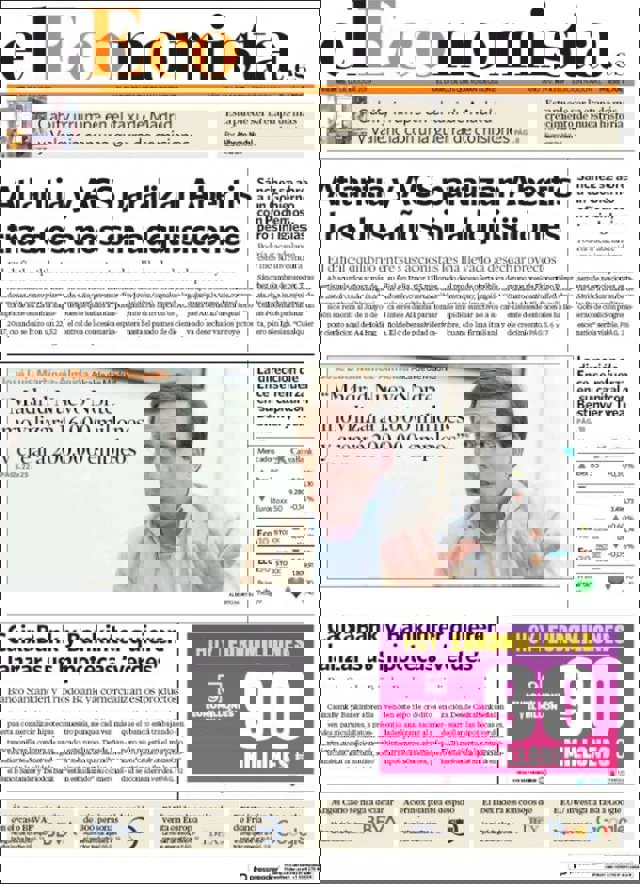 Las primeras ediciones de los periódicos de información económica españoles incluyen, entre otras, las siguientes noticias en sus portadas: