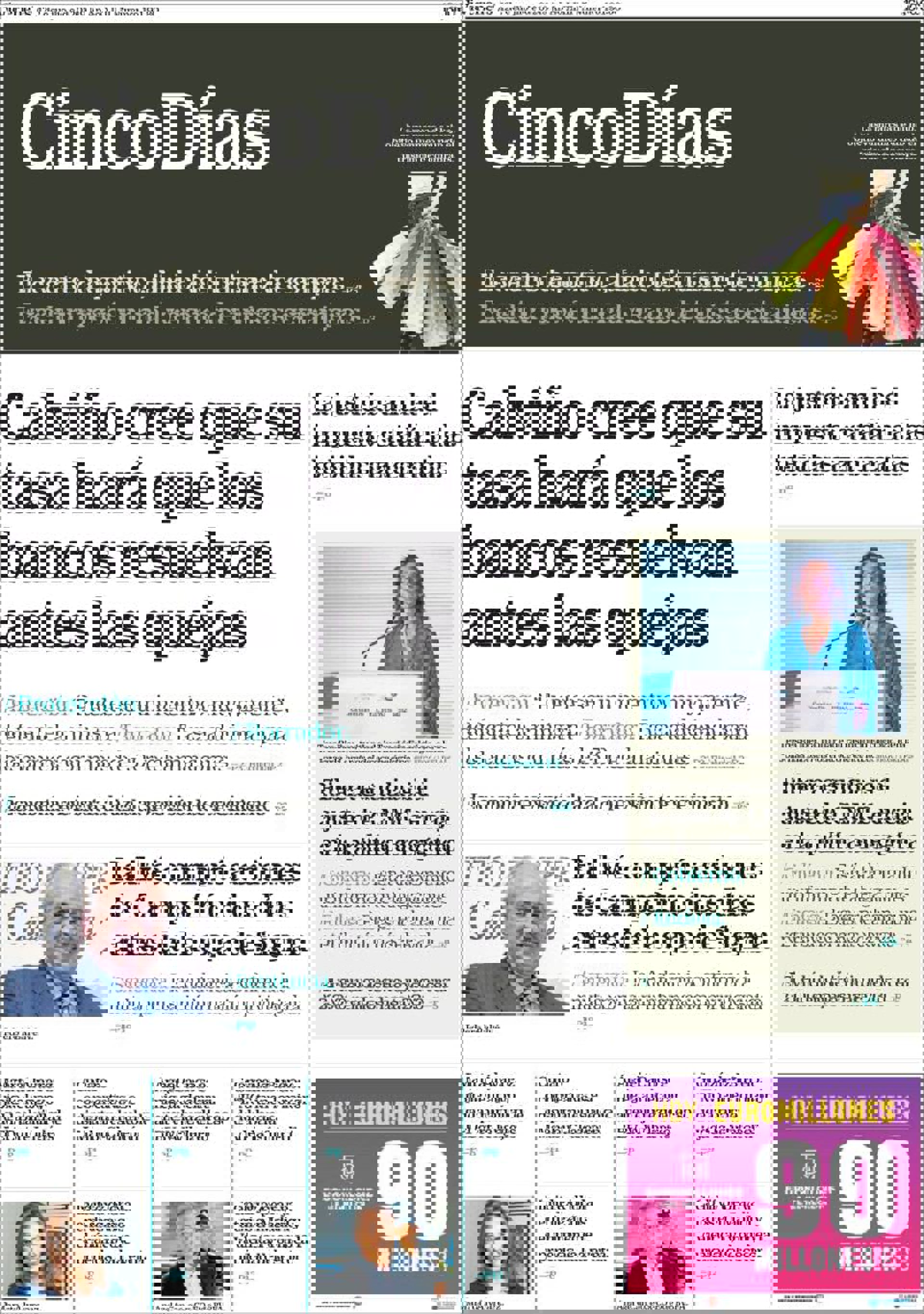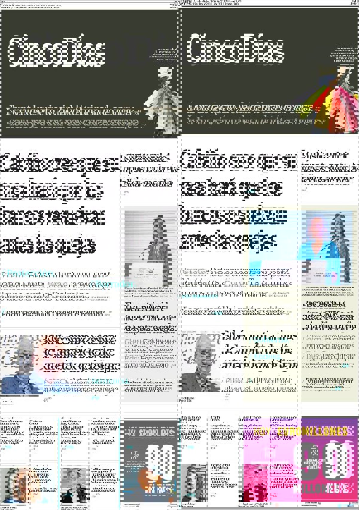 CINCO DÍAS: "Calviño cree que su tasa hará que los bancos resuelvan antes las quejas"; "Ballvé compró acciones de Campofrío dos días antes de la opa de Sigma"; "La justicia anula el impuesto catalán a las bebidas azucaradas".