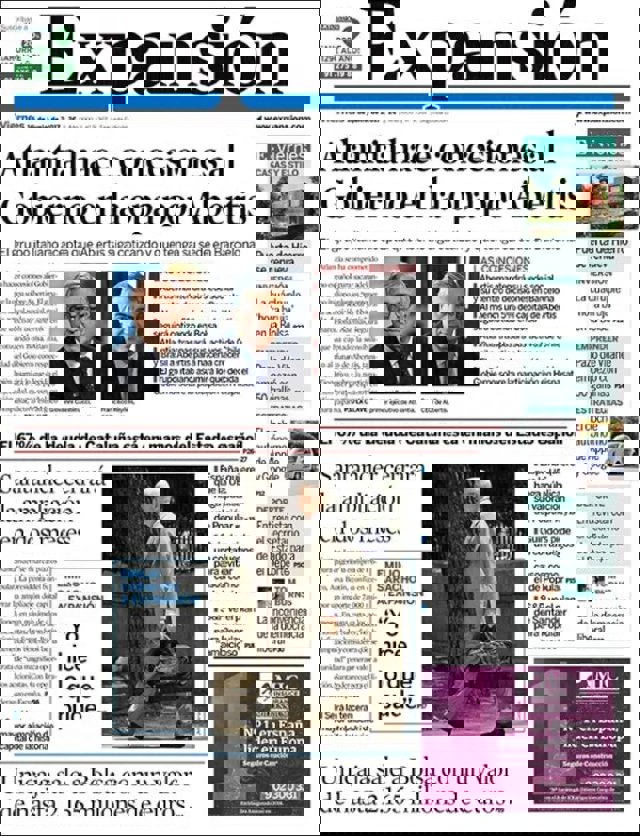 EXPANSIÓN: "Atlantia hace concesiones al Gobierno en la opa por Abertis"; "El 67% de la deuda de Cataluña está en manos del Estado español"; "Santander cerrará la ampliación en dos meses"; El expresidente de Popular, Emilio Saracho: "Yo hice lo que pude"; "Unicaja sale a Bolsa con un valor de hasta 2.165 millones de euros".
