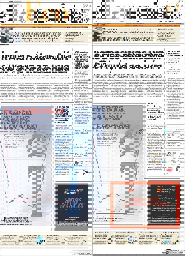 Las primeras ediciones de los periódicos de información económica españoles incluyen, entre otras, las siguientes noticias en sus portadas:
