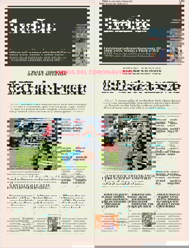 EL ECONOMISTA: "Escrivá amplía las ayudas por el virus a todos los autónomos"; El presidente de ATA, Lorenzo Amor: "Los trabajadores por cuenta propia vamos a perder 18.000 millones en dos meses"; "El 'stock' de mascarillas está a cero:el Gobierno depende de donaciones"; "El BCE rebaja sus normas para comprar deuda de España e Italia"; "La Administración debe 14.000 millones en facturas pendientes".