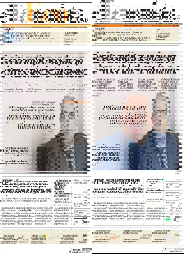 Las primeras ediciones de los periódicos de información económica españoles incluyen, entre otras, las siguientes noticias en sus portadas: