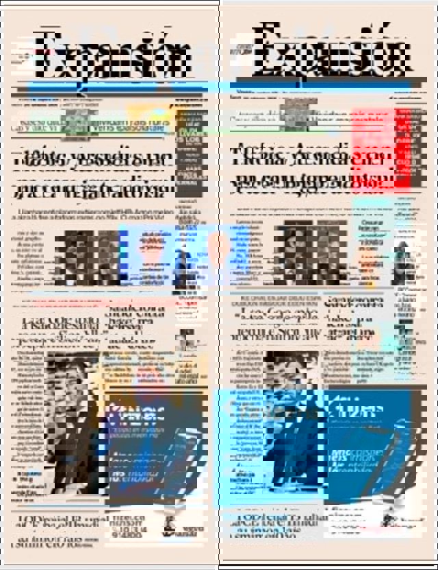 EXPANSIÓN: "Telefónica y Atresmedia se unen para crear un gigante audiovisual"; "Santande contrata 'hackers' para 'atacar' el banco"; "La OCDE rebaja el PIB mundial a su mínimo en 10 años".