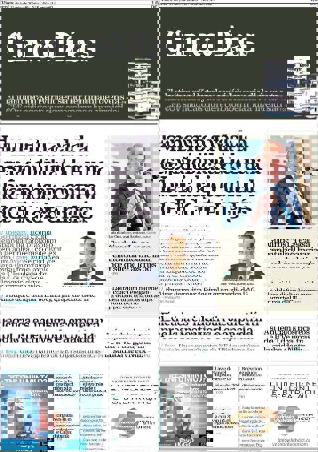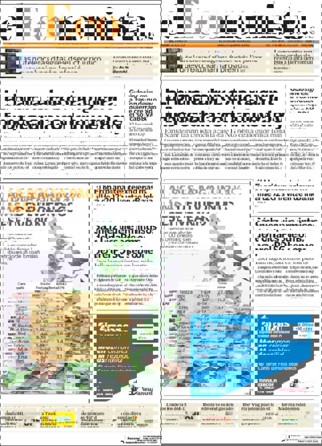 Las primeras ediciones de los periódicos de información económica españoles incluyen, entre otras, las siguientes noticias en sus portadas: