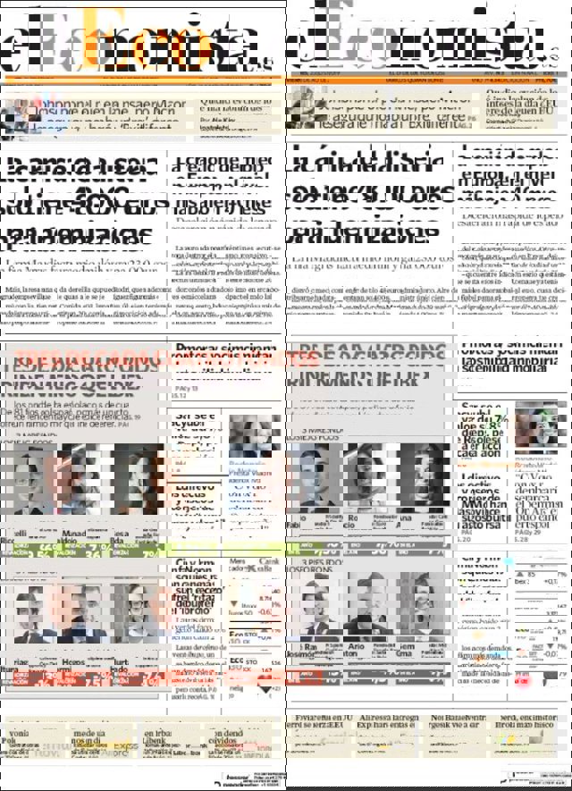 Las primeras ediciones de los periódicos de información económica españoles incluyen, entre otras, las siguientes noticias en sus portadas: