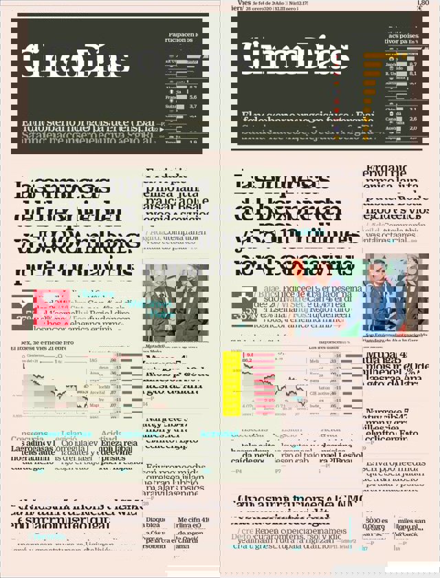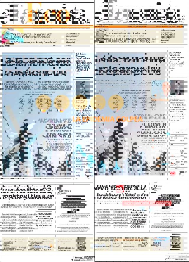 Las primeras ediciones de los periódicos de información económica españoles incluyen, entre otras, las siguientes noticias en sus portadas: