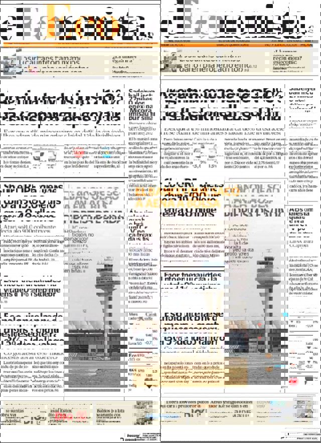 Las primeras ediciones de los periódicos de información económica españoles incluyen, entre otras, las siguientes noticias en sus portadas: