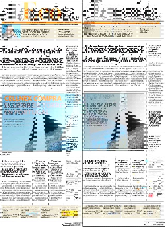 Las primeras ediciones de los periódicos de información económica españoles incluyen, entre otras, las siguientes noticias en sus portadas: