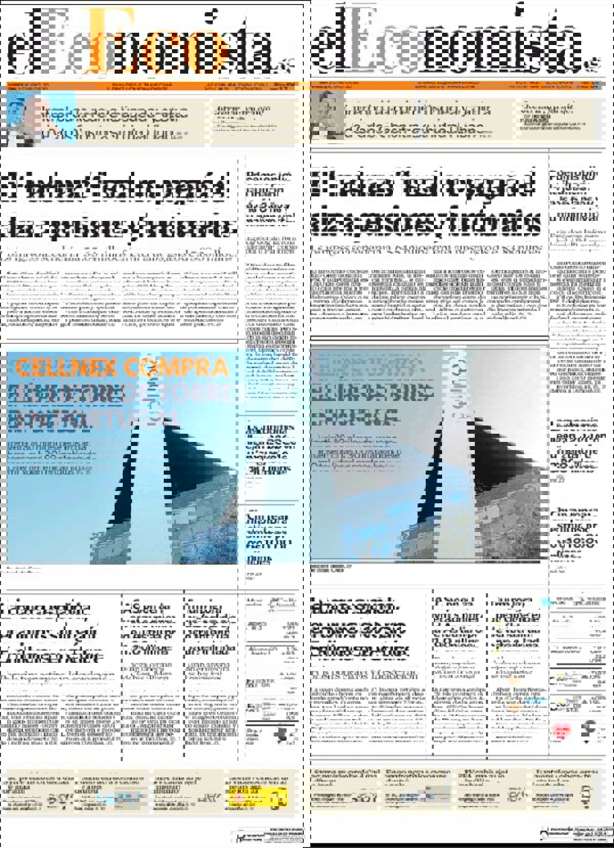 EL ECONOMISTA: "El 'hachazo' fiscal no pagará al alza a pensiones y funcionarios"; "Cellnex compra el líder de Torres de torres en Portugal"; "La banca española, en apuros: solo ganó 5 millones en octubre".