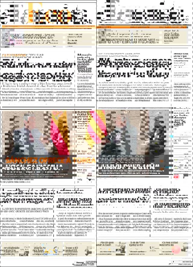 Las primeras ediciones de los periódicos de información económica españoles incluyen, entre otras, las siguientes noticias en sus portadas: