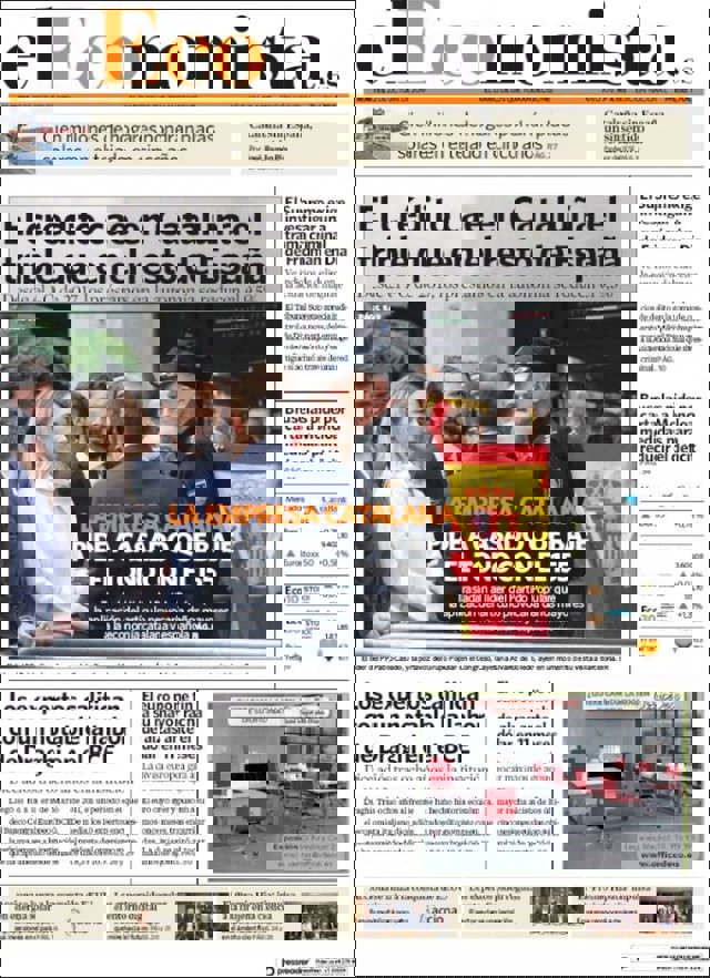 EL ECONOMISTA: "El crédito cae en Cataluña el triple que en el resto de España"; "Los expertos califican con un notable la labor de Draghi en el BCE"; "El euro pone fin a su mayor racha de alzas ante el dólar en 11 meses"; "El Supremo exige investigar una trama criminal de Fridman en Dia"; "Bruselas pide por carta a Moncloa medidas para reducir el déficit".