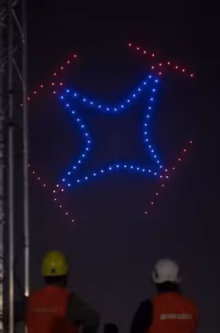 Juego de luces durante la operación combinada entre drones y aviones, organizada por Expodrónica y World ATM Congress - Alberto Ortega - Europa Press