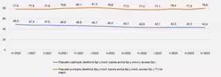 Asimismo, el precio medio mensual de los paquetes cuádruples --que no incluyen la televisión de pago-- se mantuvo estable y cerró 2023 en 43 euros, un nivel similar a los 42,9 euros de finales del año anterior.