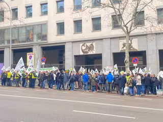 Unión de Uniones ha reunido en Madrid este jueves, 6 de marzo, a varios cientos de productores frente a las puertas de la Entidad Estatal de Seguros Agrarios (Enesa) en protesta por unos seguros agrarios "que no corresponden de manera efectiva a las realidades y necesidades del sector".