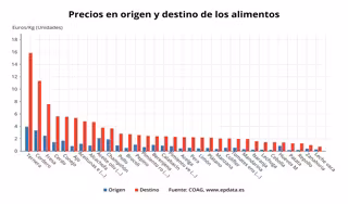 Las mandarinas, por su parte, fijaron un precio en origen de 0,32 euros por kilo en el primer mes del año, frente a los 1,95 euros en destino, y las naranjas pasaron de una cotización de 0,25 euros por kilo en el campo a 1,60 euros en la mesa.
