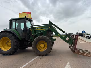 Un tractor corta una carretera en Alvarado (Badajoz) durante las protestas de agricultores y ganaderos. - EUROPA PRESS