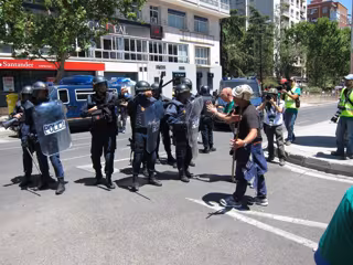 Según ha explicado, los agentes recibieron una lluvia de petardos, boladores, adoquines, rodamientos y bolas de acero. El sindicato policial cifra en 12.000 el número de manifestantes.