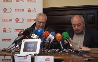 El secretario general de UGT en Andalucía, Manuel Pastrana, junto a su homólogo en CC.OO.-A, Francisco Carbonero, han pedido al Partido Socialista, tras la celebración de su 38 congreso en el que ha sido elegido Alfredo Pérez Rubalcaba como secretario general del partido, que construya un nuevo discurso de izquierdas que defienda los intereses de los trabajadores.