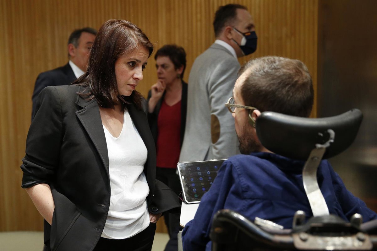 La portavoz socialista, Adriana Lastra, conversa con el portavoz de Unidas Podemos, Pablo Echenique - Pool - Archivo
