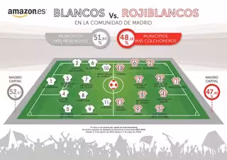 Respecto a la Comunidad de Madrid, el 51,8% de los aficionados que adquieren 'merchandising' en Amazon.es de uno de estos dos equipos lo hacen del club blanco, frente al 48,2% que prefiere artículos rojiblancos.